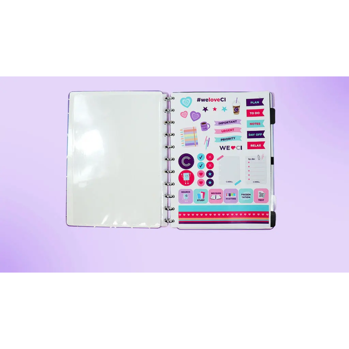 Um caderno cheio de personalidade que vai completar o seu mundo lilás.