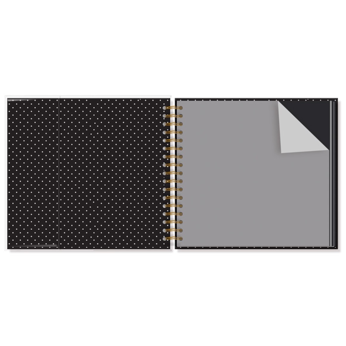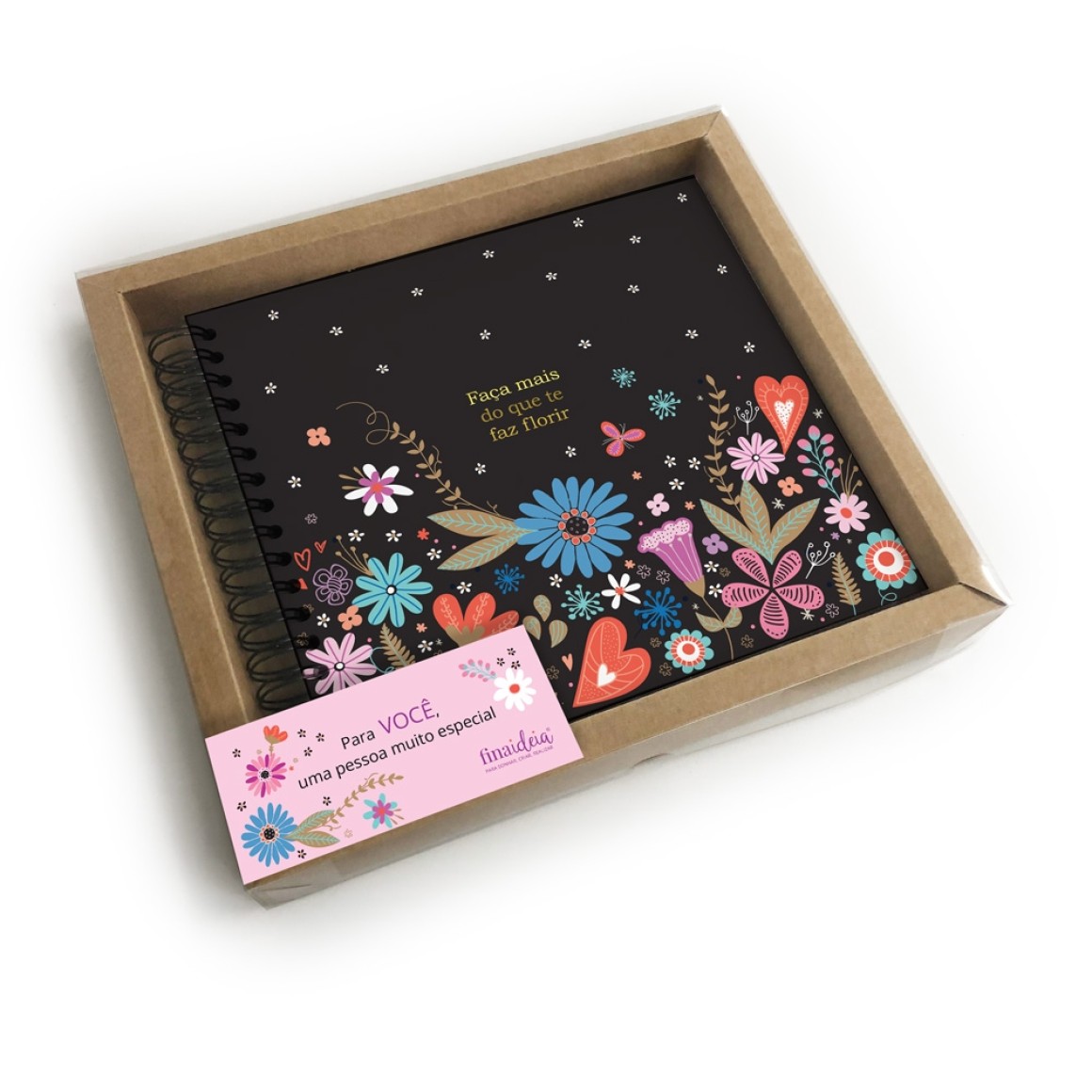 Este álbum pode ser usado para fotos, scrapbook e lettering. Tem capa dura, miolo com 30 folhas pretas 180 g, folhas protetoras intercaladas, formato 21,8 cm × 23,5 cm, encadernação em wire-o e aplique especial na capa. Acompanha capa protetora transparente. Embalagem em caixa de papel Kraft e tampa em acetato. Medidas: 30 cm ×27 cm x 3 cm, fechamento com tag adesiva com linda mensagem.