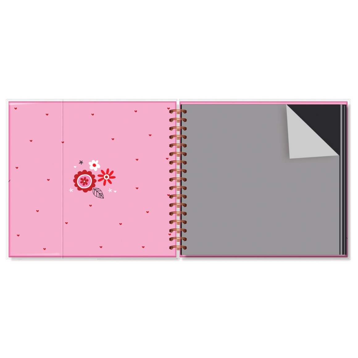 Este álbum pode ser usado para fotos, scrapbook e lettering. Tem capa dura, miolo com 30 folhas pretas 180 g, folhas protetoras intercaladas, formato 21,8 cm × 23,5 cm, encadernação em wire-o e aplique especial na capa. Acompanha capa protetora transparente. Medidas: 30 cm ×27 cm x 3 cm.
