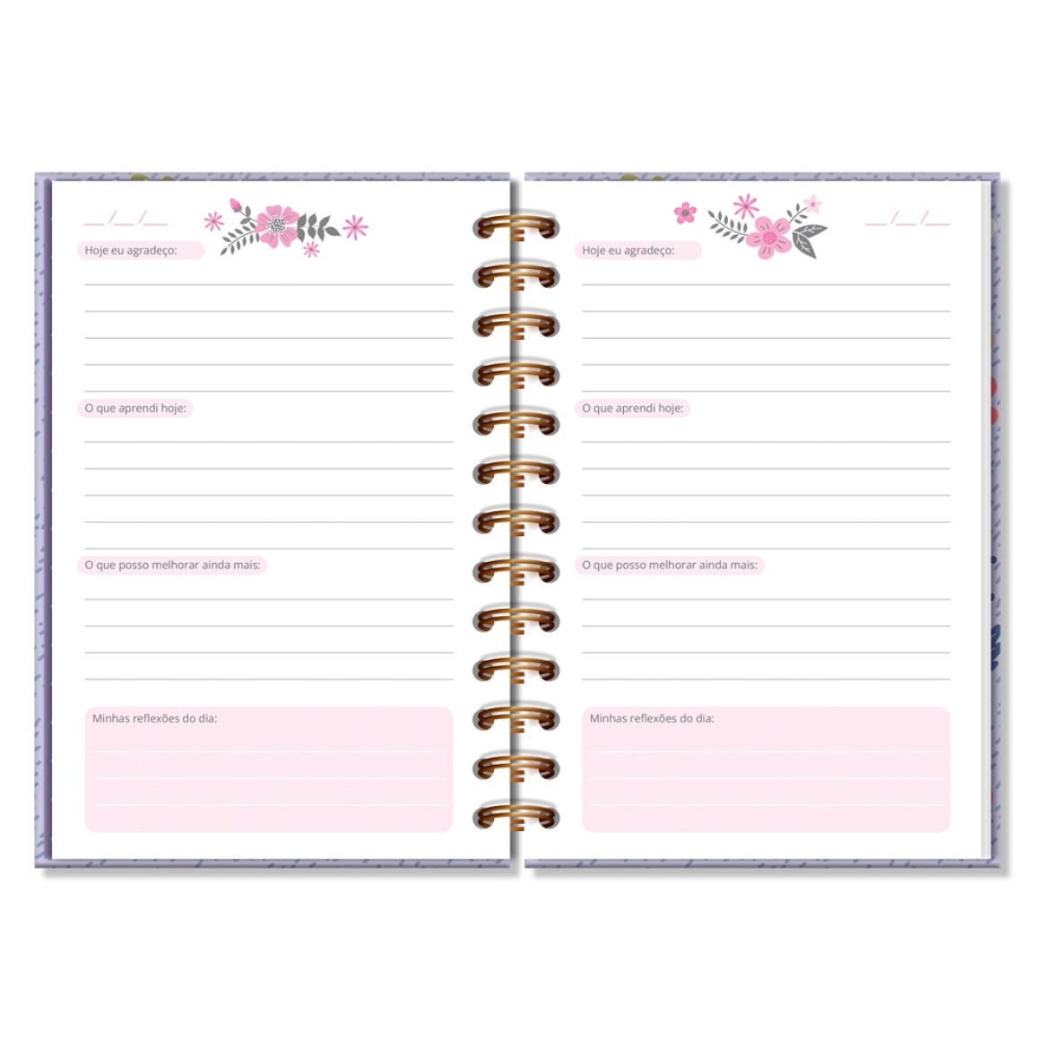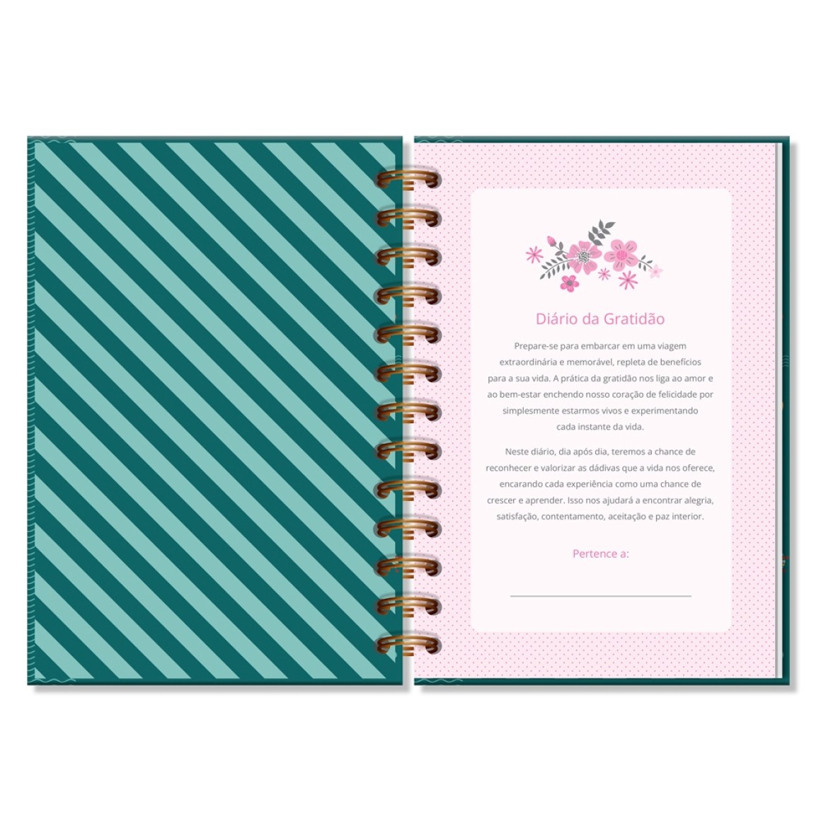 Dia após dia, este diário oferece a chance de registrar, reconhecer e valorizar as dádivas que a vida nos oferece e encontrar alegria, satisfação, contentamento, aceitação e paz interior. Capa dura, miolo pautado e decorado com 80 folhas em papel offset 90 g (você pode usar canetas coloridas que não passam para o outro lado), formato 11,8 cm × 17,5 cm, encadernação em wire-o.