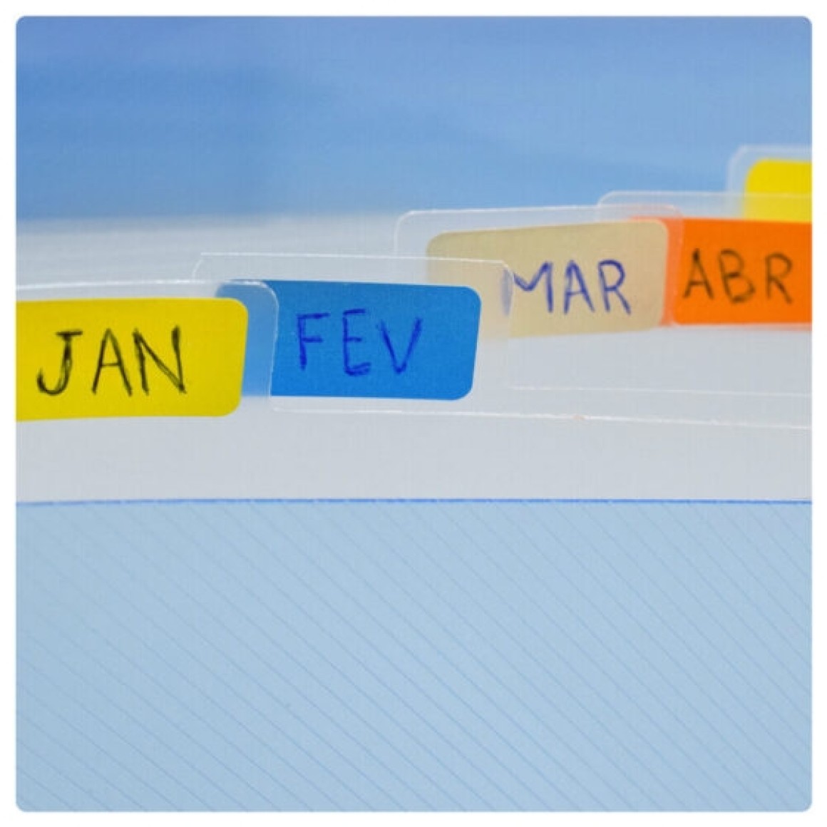 Organize seus documentos com mais praticidade. Esta pasta sanfonada é ideal para usar em necessidades anuais pois conta com 12 divisões, exatamente um espaço para cada mês do ano, ou pode separar por ordem alfabética, numérica, por assunto de importância ou qualquer ordem lógica, que podem ser identificadas com as etiquetas coloridas.