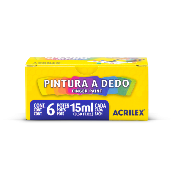 Pintura a Dedo 15ml 6 Cores - Acrilex Tinta ideal para atividades com as mãos. Aumenta o desenvolvimento da percepção tátil e da coordenação motora.