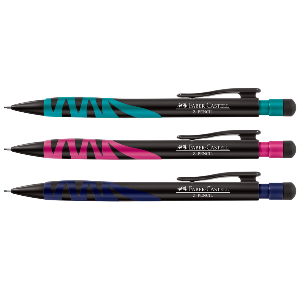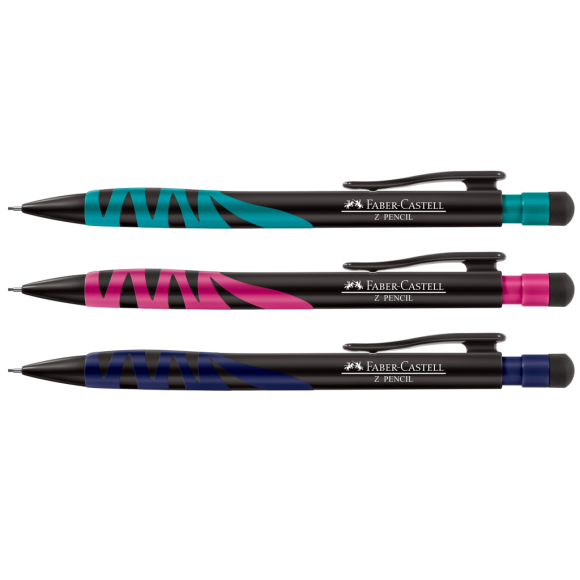 A Lapiseira Z-Pencil da Faber-Castell possui o acionamento superior da mina de grafite. Seu corpo possui grip emborrachado, que proporciona maior segurança e conforto na escrita. Possui borracha no topo da lapiseira. Ideal para utilizar o grafite 0.7mm.