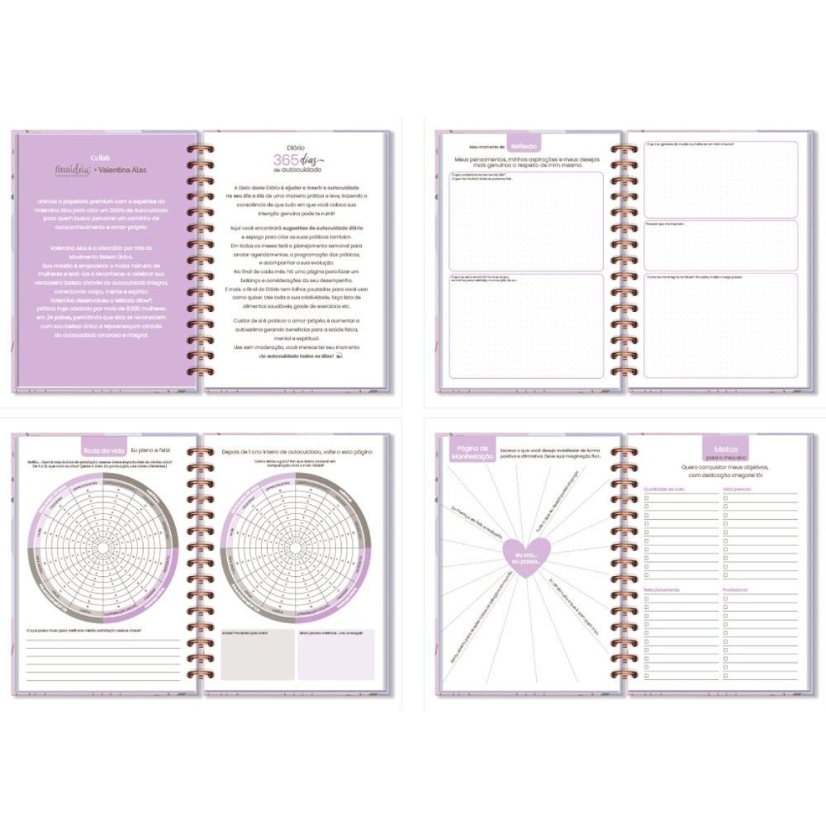 Unimos a papelaria premium com a expertise da Valentina Alas para criar um Diário de Autocuidado para quem busca percorrer um caminho de autoconhecimento e amor-próprio. A ideia deste Diário é ajudar a inserir o autocuidado no seu dia a dia de uma maneira prática e leve. Aqui você encontrará sugestões de autocuidado diário e espaço para criar as suas práticas também. Em todos os meses terá o planejamento semanal para anotar agendamentos, a programação das práticas, e acompanhar a sua evolução. No final de cada mês, há uma página para fazer um balanço e considerações do seu desempenho e duas páginas pontilhadas livres para anotar o que desejar. Use sem moderação, você merece ter seu momento de autocuidado todos os dias! O diário tem a capa dura com aplicação em hot stamp, elástico para fechamento, 105 folhas em papel offset 90g, formato 14,5 x 20,5cm e marcador de página.