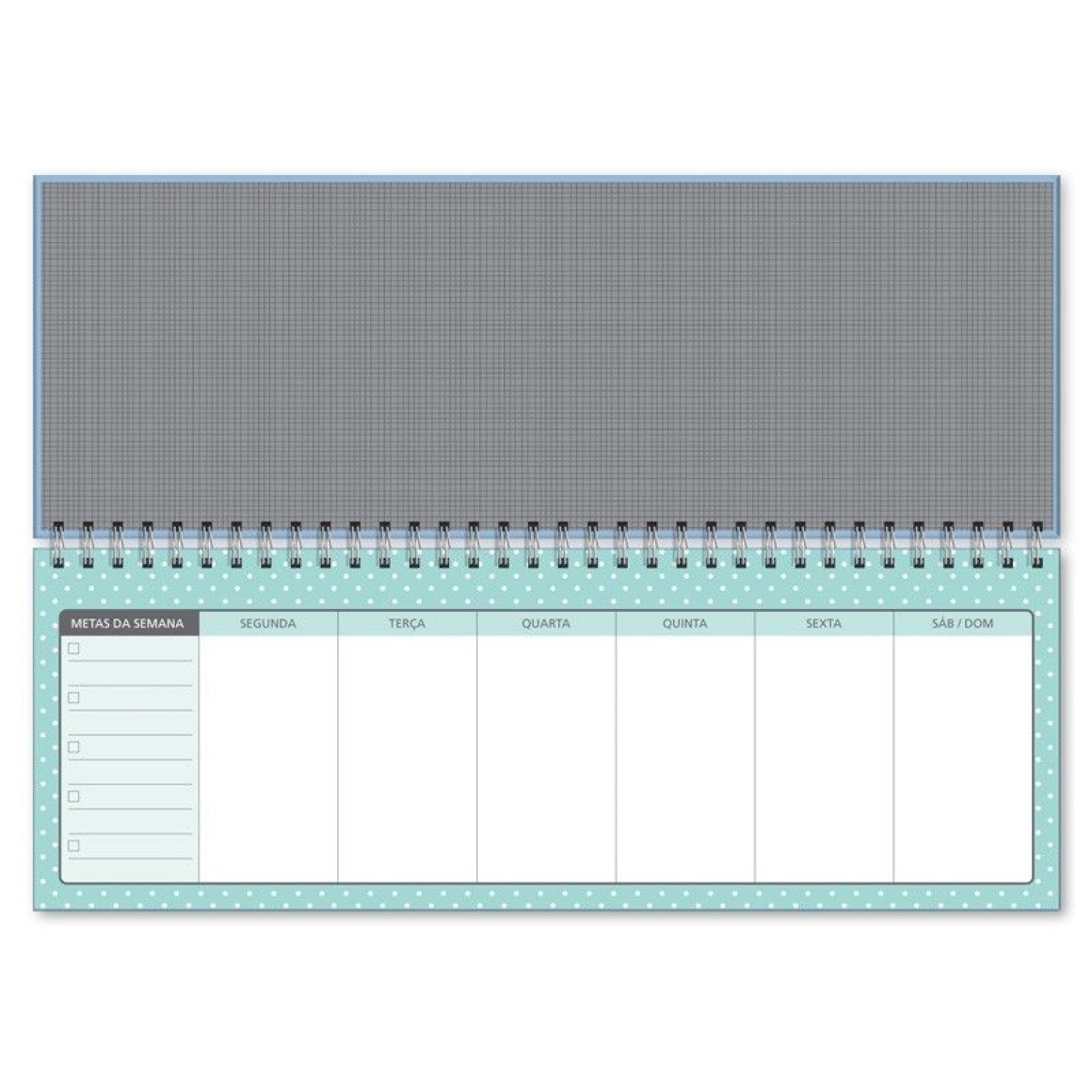 Planner Organizador semanal, perfeito para deixar sua semana organizada e enfeitar sua mesa! Capa dura, miolo com estampas variadas e coloridas, 52 folhas em papel offset 90g (canetas não passam para o outro lado!). Formato 30x10,5cm. Acompanha marcador de páginas.