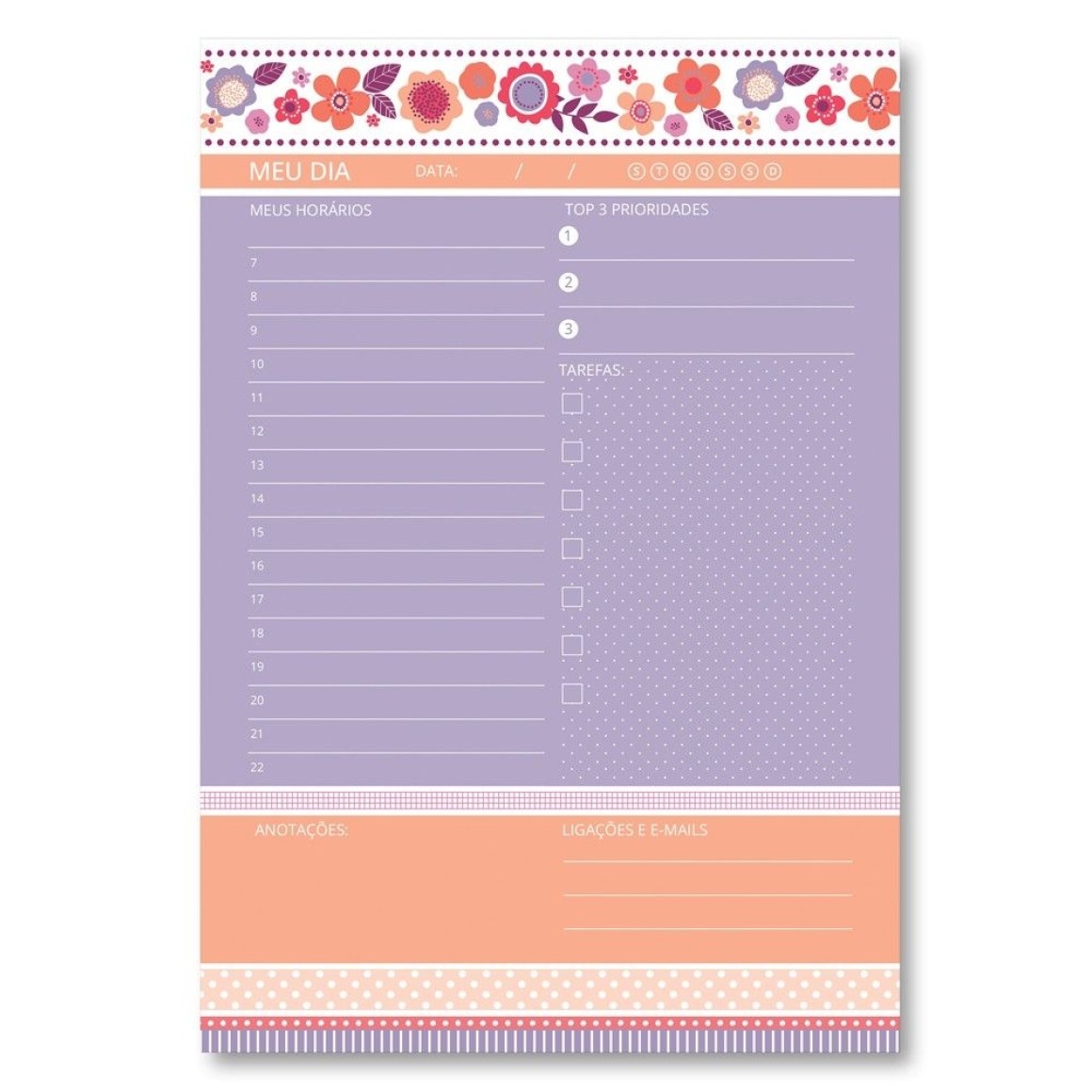 Anote suas tarefas para o seu dia ficar mais organizado. Bloco com 80 folhas, papel offset 75g, formato 14,5x21cm.