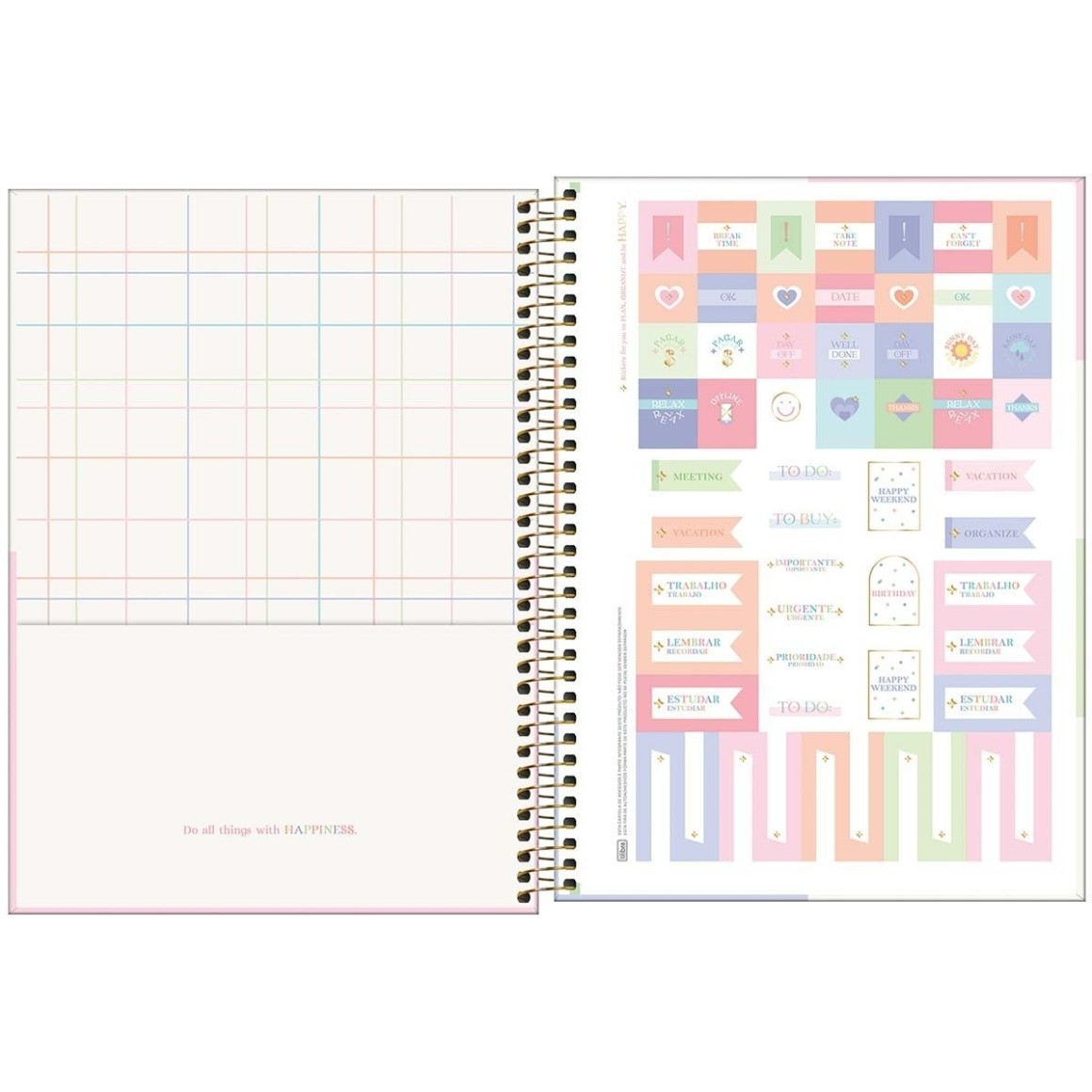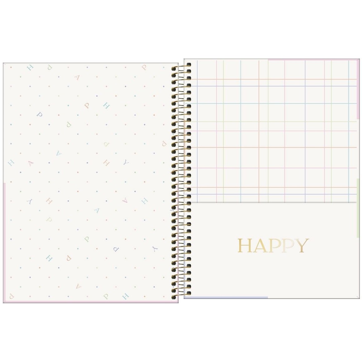 O Caderno Espiral Capa Dura Universitário Connect 10 Matérias Happy 160 Folhas da Tilibra é perfeito para você que busca uma opção para organização da rotina de estudos com visual em cores pastel.