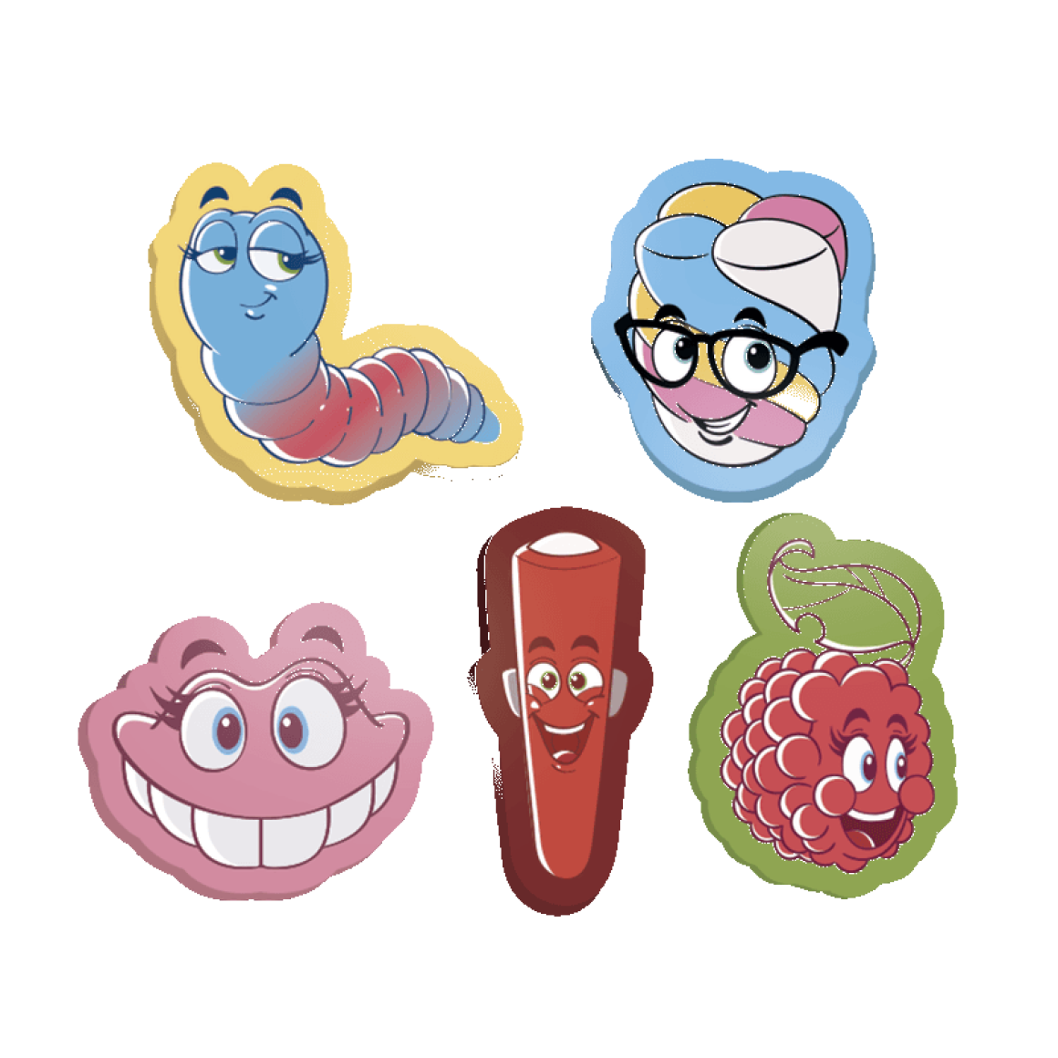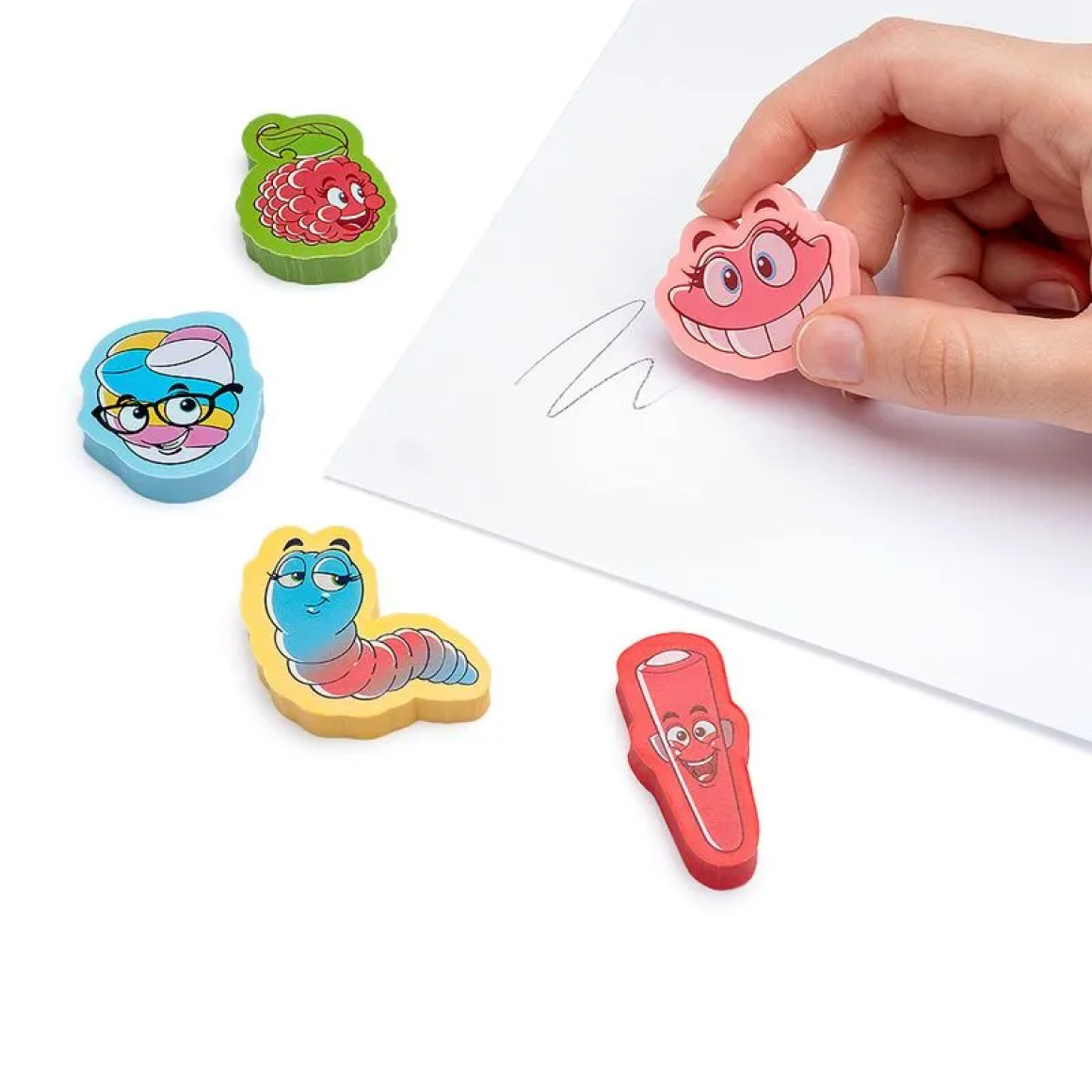 A Borracha Decorada Fini vem com 5 estampas diferentes dos personagens da marca mais doce do mundo, todas com formatos variados, com expressões superfofas dos rostinhos deles, tornando o simples ato de apagar em uma experiência divertida e única. Além disso, a borracha é colecionável, macia e de alta qualidade.