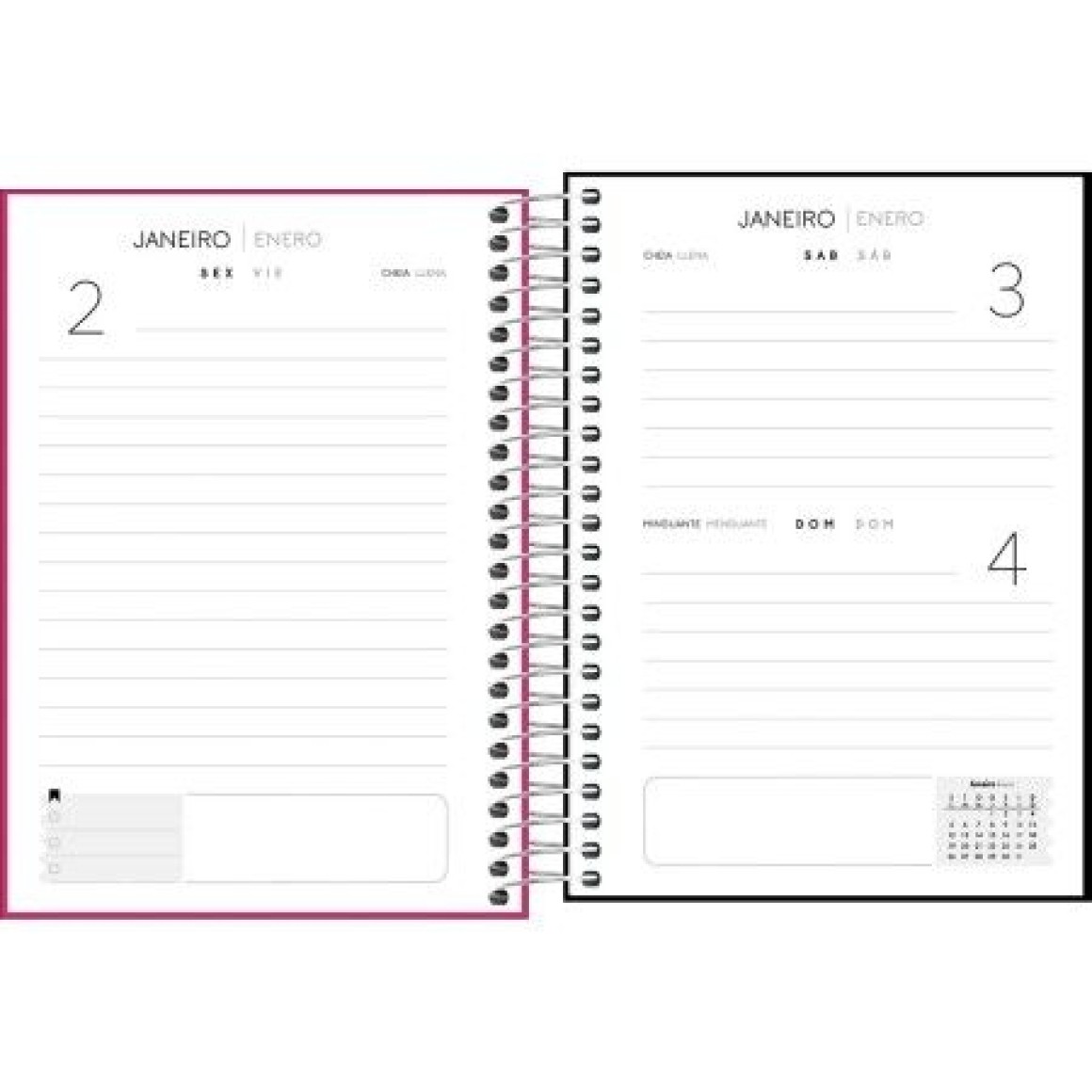 A Agenda Espiral Diária 11,7x 16,4 cm Neon 2026 é ideal para a organização do dia a dia. Este produto, com visão de um dia por página, exceto sábado e domingo, possui capa plástica em cor neon e bolsa plástica para guardar trabalhos e anotações.