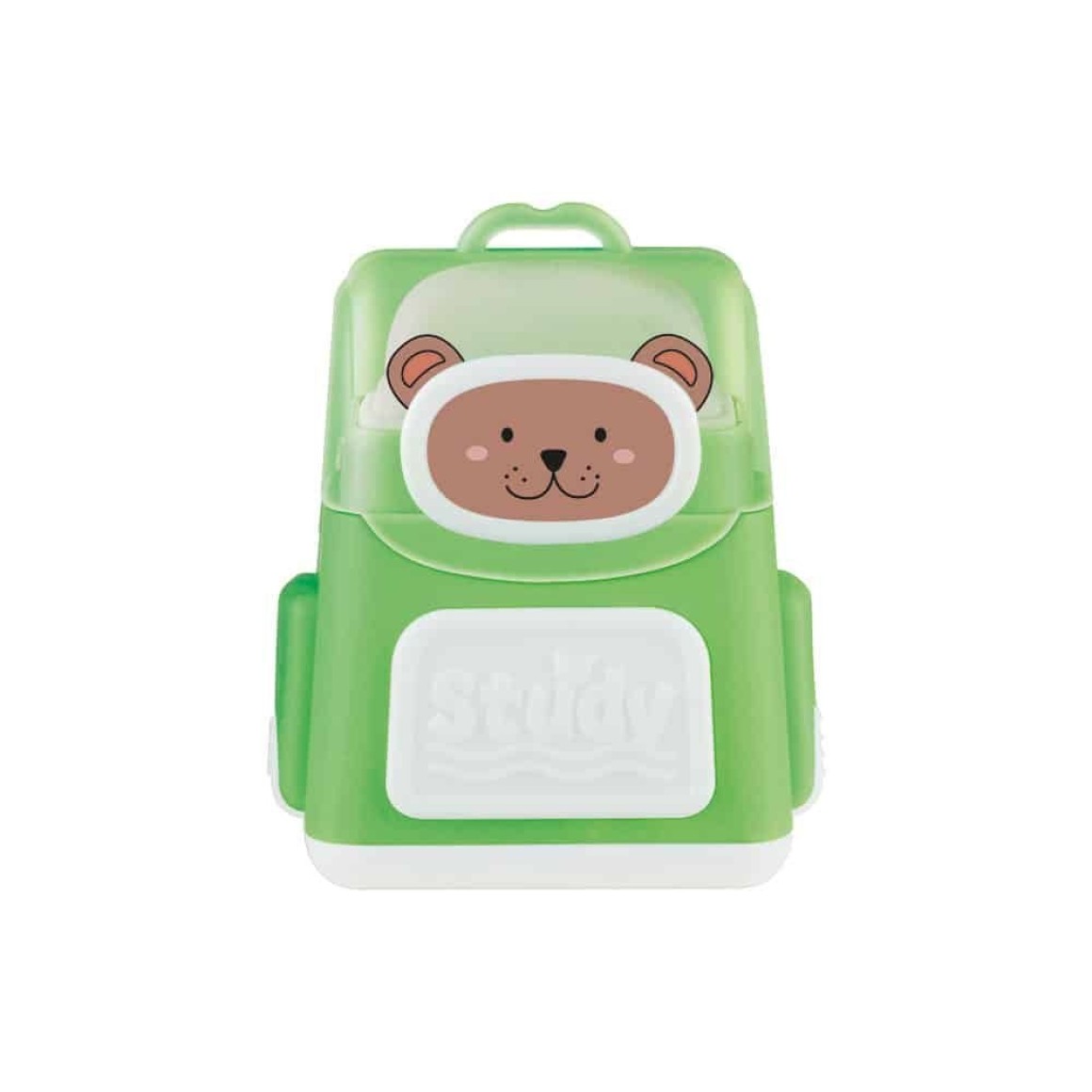 O apontador duplo com depósito + borracha Mochila é 2 em 1, trazendo muita praticidade para o dia-a-dia. Sua borracha é não tóxica e o apontador tem lâmina antiferrugem. Seu formato de mochilas com bichinhos é a maior fofura!